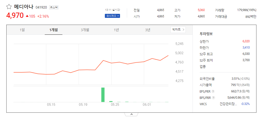 메디아나 주가 분석