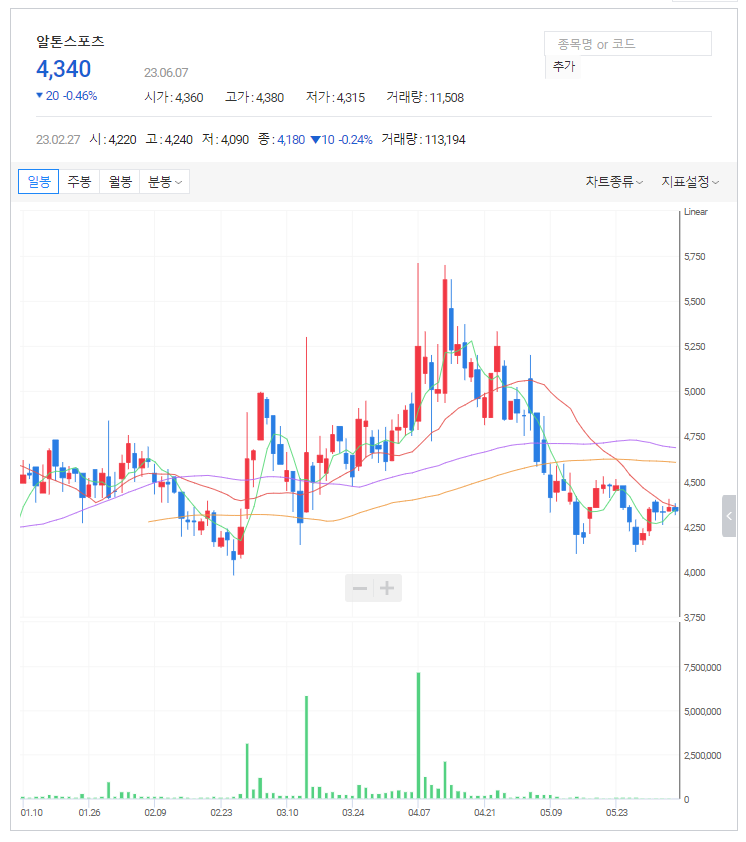 알톤스포츠 주가 분석