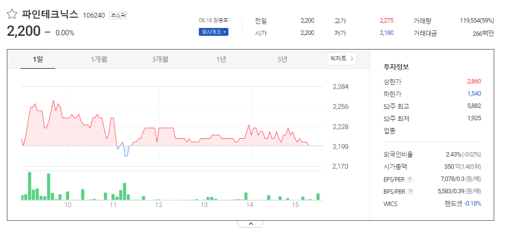 파인테크닉스 주가 분석