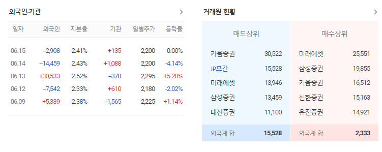 가장 좋은 경우는 외국인과 기관 모두 매수하는 쌍끌이 종목을 집중적으로 투자하는 것입니다. 기관과 외국인이 같이 매수한다는 뜻은 그만큼 좋은 종목인 것을 의미합니다. 주식 주가 전망을 분석하려면 기업체를 우선 분석하고 시장에서 어떤 상태인지 찾아봐야 합니다. 거기에 기관과 외국인 매수 흐름을 확인한다면 성공 확률을 올릴 수 있습니다.
