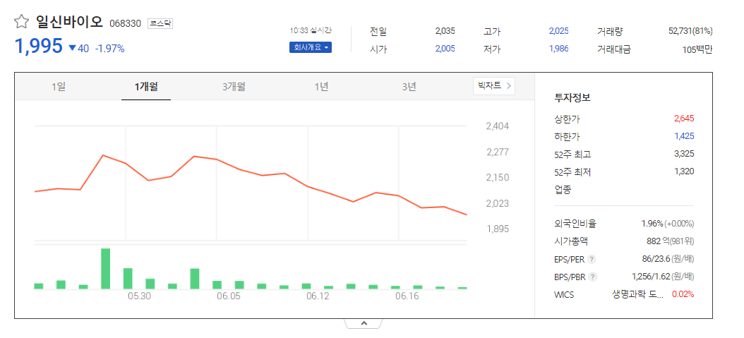 일신바이오 주가 분석