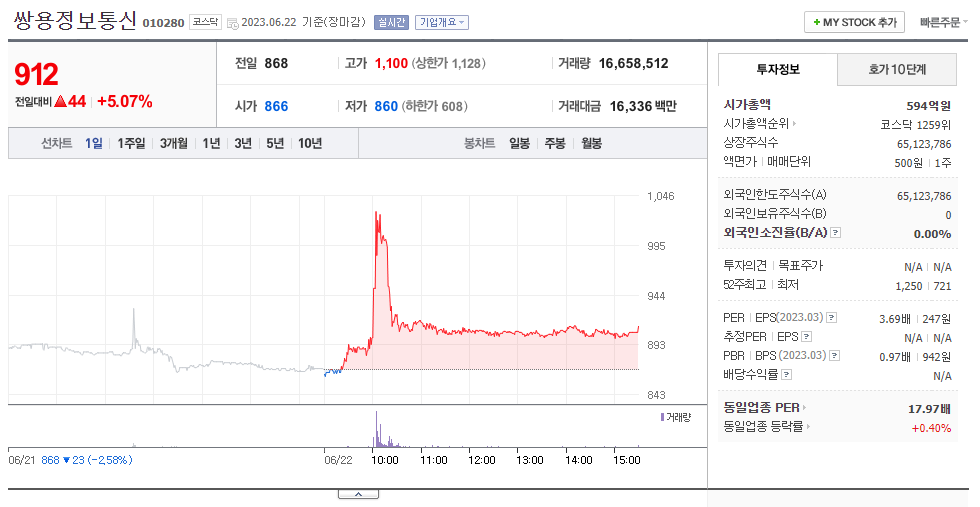 쌍용정보통신 주가 분석