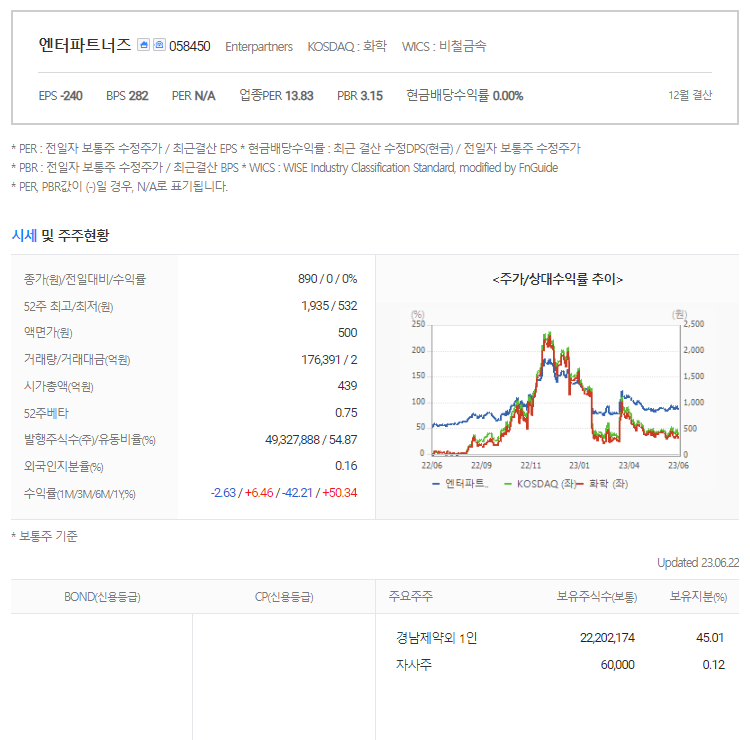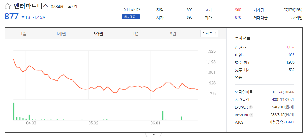 엔터파트너즈 주가 전망 현황과 주식에서 기업 순위