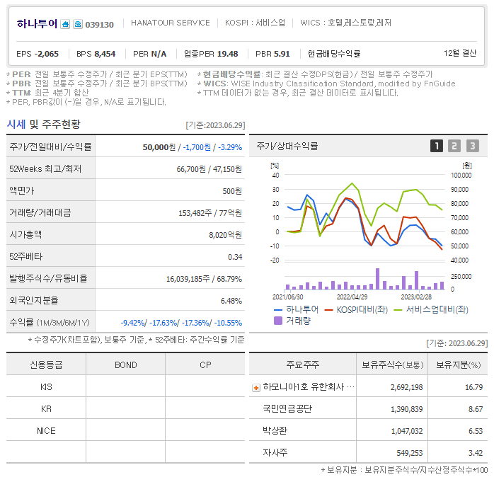 이 글에서는 하나투어 주가 전망과 목표 주가, 기업 정보에 대해서 설명합니다. 주식을 보기 전에 기업 정보를 확인하고 주가 정보에 대해 살펴보는 것은 굉장히 중요합니다. 하나투어 주식의 주요 현황과 투자 정보를 확인하시고 현재 시장 흐름을 알아보겠습니다.