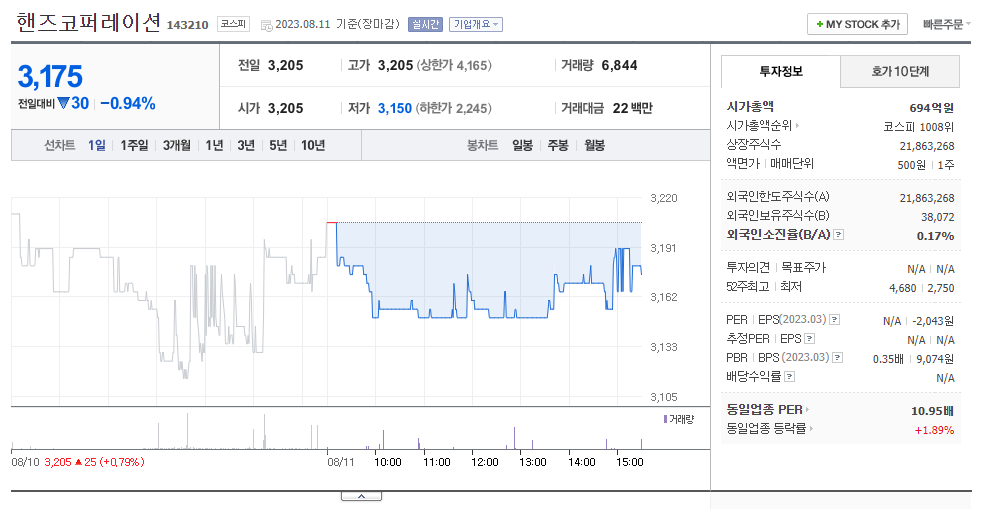 핸즈코퍼레이션 주가 분석