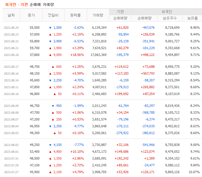 따라서 개인 투자자는 기관이나 외국인 세력을 따라가며, 세력이 약해도 어떤 주식을 매수하고 매도하여 수익을 창출합니다. 최근에 외국인보다 기관 투자자를 따르는 경향이 더 큰데, 외국인의 매수가 종종 불확실하고 개인의 단기 거래가 기관과 유사하기 때문입니다.