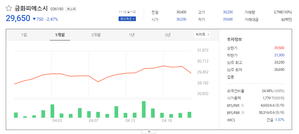 금화피에스시 가치 분석