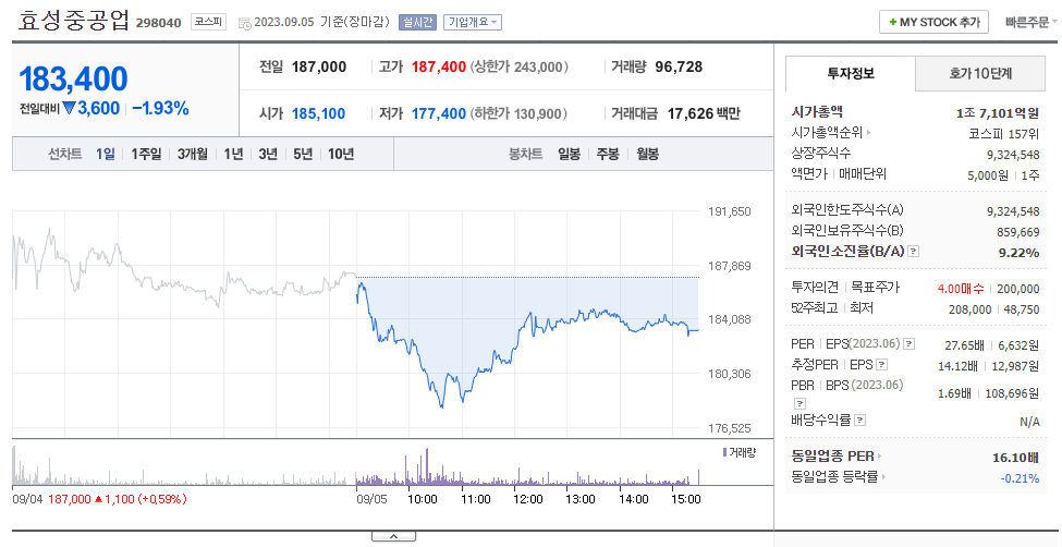이 글에서는 효성중공업 주가 전망과 목표 주가, 기업 정보에 대해서 설명합니다. 주식 시장에서 중요한 것은 미래의 기업 가치를 예측하고 선제적으로 움직이는 것입니다. 투자할 종목을 고르기 전에 현재 기업의 현황과 데이터를 확인하는 것이 필요합니다. 효성중공업 주식의 주요 현황과 투자 정보를 확인하시고 주식 투자에 도움이 될 만한 정보들을 모아 놓았으니 투자 시 참고하시기 바랍니다..