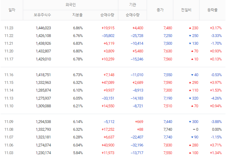 따라서 개인 투자자는 기관이나 외국인 세력을 따라가며, 세력이 약해도 어떤 주식을 매수하고 매도하여 수익을 창출합니다. 기관 투자자를 따르는 경우가 최근에 자주 발생하며, 이는 외국인 매수의 불신과 개인의 단기 거래가 기관과 유사하기 때문입니다.