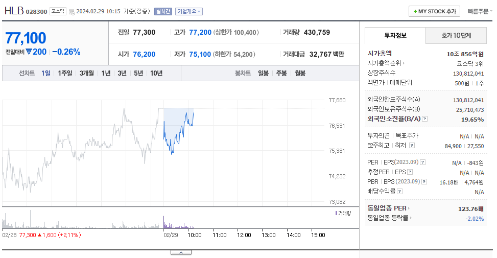 HLB 주가 분석