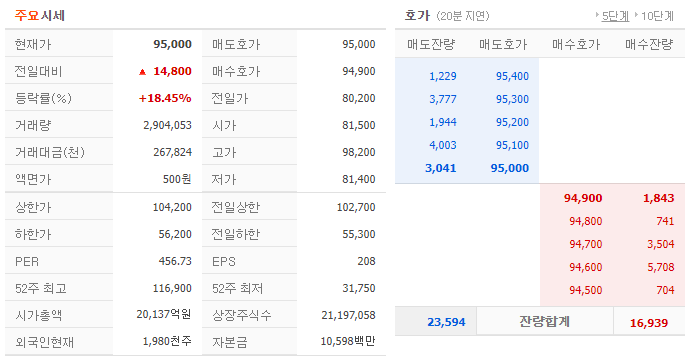 ISC 현재 주가는 80,200원이며 전일 대비 -2.67원의 모습을 보이고 있습니다. ISC의 주주현황을 살펴보면 SKC(외 2인)이 지분 48.89%를 소유하고 있습니다. ISC는 반도체 및 관련장비 기업으로 장중 기준으로 주가는 80,200원 입니다. ISC 시가 총액은 2조137억 원이며 발행 주식수는 9.34주 입니다. 외국인 보유 비중은 504,634% 이며 장중 거래량은 21,197,058를 기록했습니다. 매출액은 1,153억 원, 영업이익은 559억 원을 달성했습니다. EPS는 2,985원이며 ISC 주식 배당수익률은 17,000% 입니다.