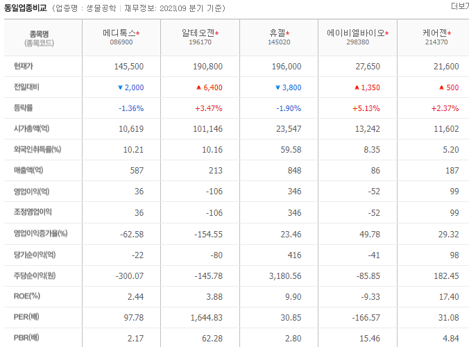-2023년 9월 전년동기 대비 연결기준 매출액은 7.2% 증가, 영업이익은 51% 감소, 당기순이익은 68.5% 감소. 동사의 매출은 증가했으나 소송 관련 비용으로 인해 영업이익이 감소함. 지배기업은 대전지방식품의약품안전청과의 메디톡신주(50단위, 100단위, 150단위)에 대한 품목허가 취소 처분 및 잠정제조판매중지명령 처분에 대한 취소소송에 대하여 2023년 11월 9일 1심판결에서 승소.