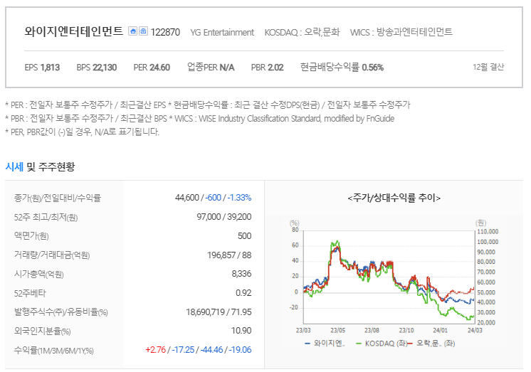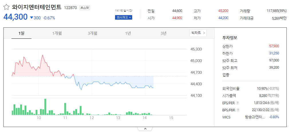 이 글에서는 와이지엔터테인먼트 주가 전망과 목표 주가, 기업 정보에 대해서 설명합니다. 주식 투자의 중심은 미래의 기업 가치를 예측하고 선제적으로 움직이는 것입니다. 투자할 종목을 고르기 전에 현재 기업 상태와 지표를 살펴야 합니다. 와이지엔터테인먼트 주식의 주요 현황과 투자 정보를 확인하시고 주식 투자에 도움이 될 만한 정보들을 모아 놓았으니 투자를 고려하실 때 참고하세요..