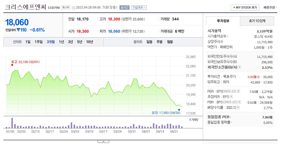 크리스에프앤씨 주가 전망 현황과 주식에서 기업 순위