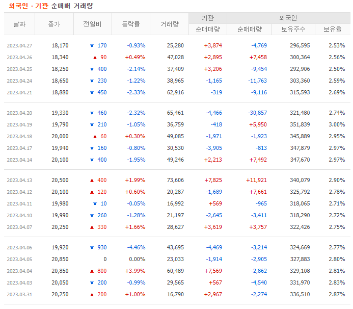 가장 좋은 경우는 외국인과 기관 모두 매수하는 쌍끌이 주식 종목을 살펴보는 방법입니다. 기관과 외국인이 같이 매수하는 것은 투자하기 좋다는 뜻입니다. 주식의 전망을 알아보려면 자세한 기업의 정보를 살펴보고 시장에서의 위치를 분석해야 합니다. 거기에 외국인과 기관 매수 흐름을 확인한다면 투자에 있어서 확률을 올릴 수 있다고 생각합니다.