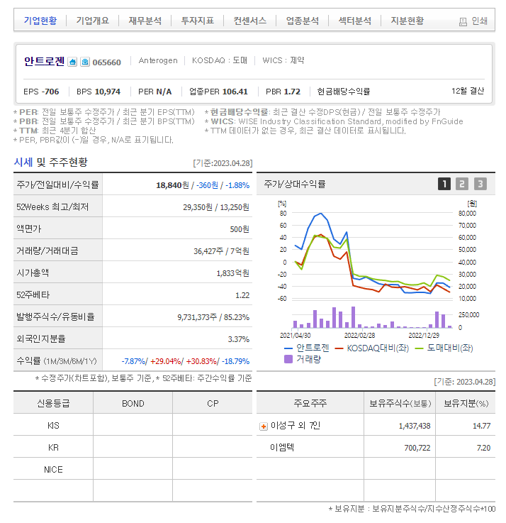 이 글에서는 안트로젠 주가 전망과 목표 주가, 기업 정보에 대해서 설명합니다. 주식을 제대로 하기에 앞서 기업의 주가와 재무 정보에 대해서 알아보는 것은 매우 중요합니다. 안트로젠 주식의 주요 현황과 투자 정보를 확인하시고 지금 시장에서 위치를 파악해보겠습니다.