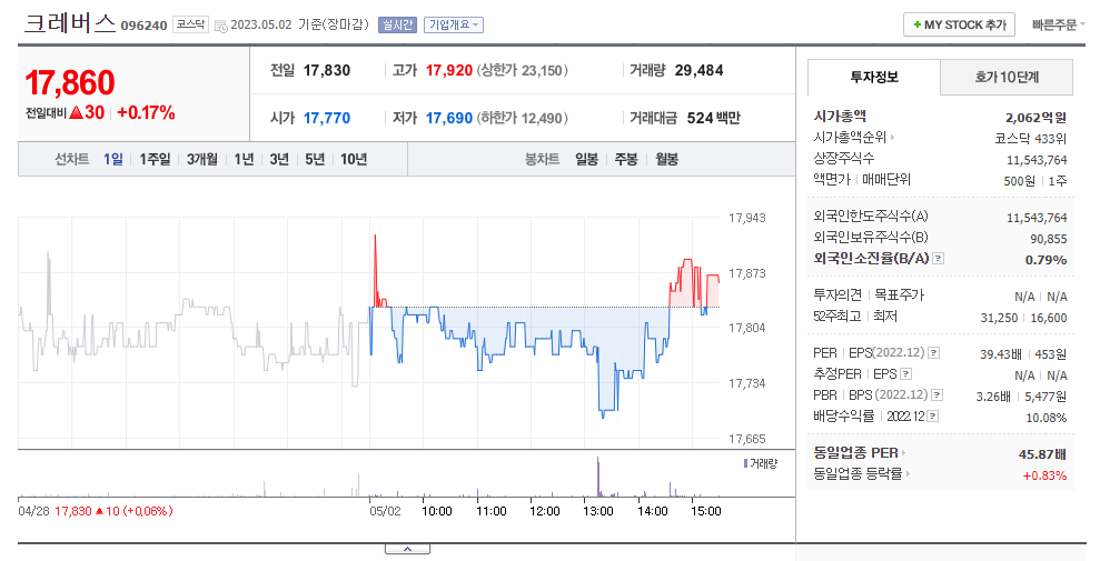 크레버스 주가 전망과 기업 현황, 목표 주가