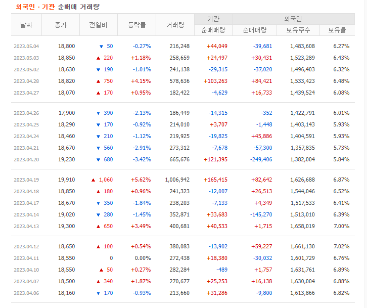 물론 가장 좋은 경우는 외국인과 기관 모두 매수하는 쌍끌이 종목을 찾아서 투자하는 것입니다. 양대 매수주체가 동시에 매수한다는 것은 투자하기 좋다는 뜻입니다. 주식 주가 전망을 알아보기 위해서는 먼저 기업체를 분석하고 시장에서 흐름을 확인해야 합니다. 그리고 기관과 외국인 매수 추세까지 알아본다면 투자에 있어서 확률을 올릴 수 있다고 생각합니다.