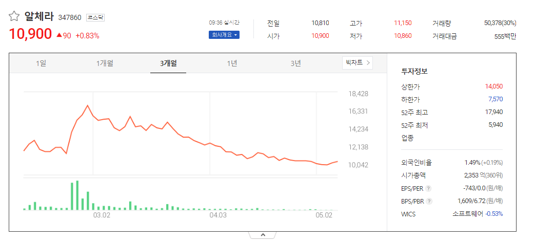 이 글에서는 알체라 주가 전망과 목표 주가, 기업 정보에 대해서 설명합니다. 주식을 시작하기 위해서는 기업의 현재 주가와 재무 상태에 관해서 정리해보는 것은 아주 중요합니다. 알체라 주식의 주요 현황과 투자 정보를 확인하시고 현재 시장에서 어떤 상황인지 알아보겠습니다.