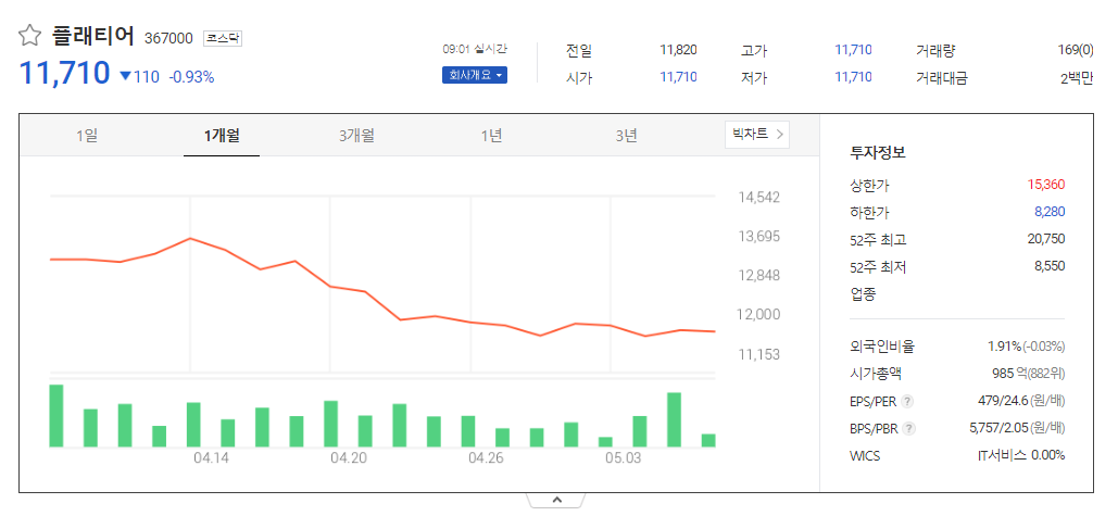 이 글에서는 플래티어 주가 전망과 목표 주가, 기업 정보에 대해서 설명합니다. 주식 투자 전에 기업의 주가와 재무 정보에 대해서 살펴보는 것이 중요합니다. 플래티어 주식의 주요 현황과 투자 정보를 확인하시고 현재 시장 현황을 살펴보겠습니다.