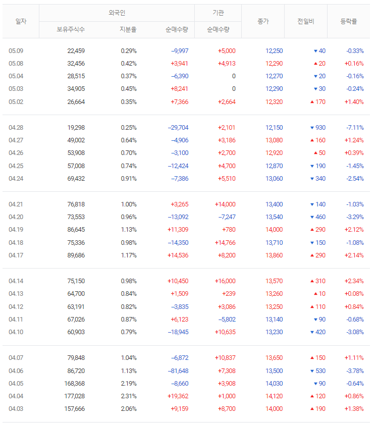 가장 좋은 경우는 기관과 외국인 모두 매수하는 쌍끌이 주식을 투자하는 것입니다. 큰 세력 두개가 동시에 매수한다는 것은 그만큼 좋은 종목인 것을 의미합니다. 주식의 흐름을 분석하기 위해서는 먼저 기업체를 분석하고 시장 흐름에서의 위치를 파악해야 합니다. 그리고 기관과 외국인 매수 흐름까지 살펴본다면 투자에 있어서 확률을 올릴 수 있다고 생각합니다.