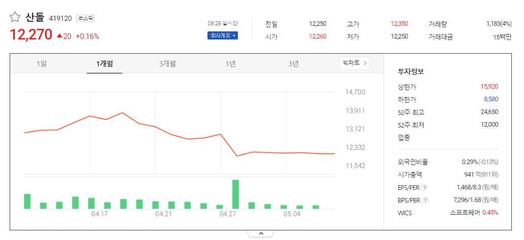 산돌 주가 전망 예상, 목표 주가 확인