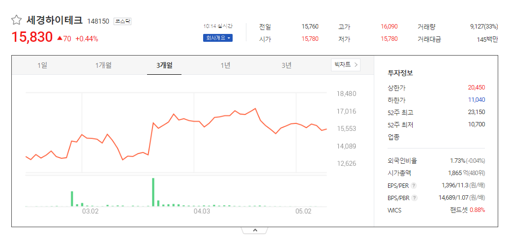 세경하이테크 주가 전망 현황과 주식에서 기업 순위