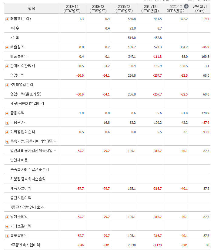 -2022년 12월 전년동기 대비 연결기준 매출액은 19.4% 감소, 영업손실은 68% 감소, 당기순손실은 87.3% 감소. 매출 감소, 판관비 증가에도 불구하고 원가율 하락에 힘입어 영업적자 폭이 축소됨. 동사는 사업성이 매우 높은 인플루엔자 진단키트와 암진단 키트를 개발하고 있으며, 각각의 진단키트는 호흡기 질환과 알러지, 염증 질환에 대한 진단으로 확대 적용을 계획 중임.