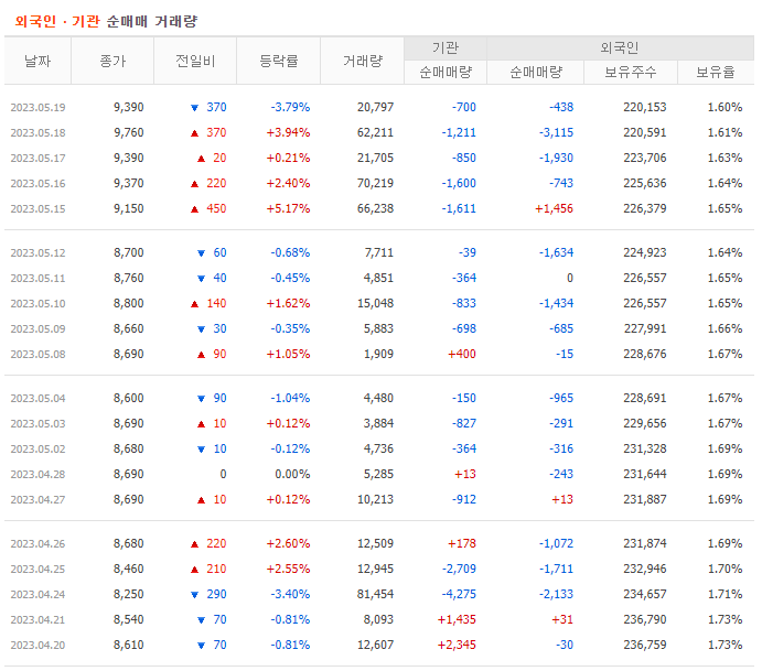 그렇기에 개인 매수 세력은 기관이나 외국인 투자자를 따라하는 방법밖에 없습니다. 개인 투자자들은 어떤 것들을 매수하고 매도하는지 확인만해도 수익을 낼 수 있습니다. 지금은 외국인 보다 기관의 흐름을 따라하는 성향이 강합니다. 외국인의 매수는 속임수가 있을 수 있고 개인 투자자들이 선호하는 단기 매매는 기관투자자가 적합하기 때문입니다.