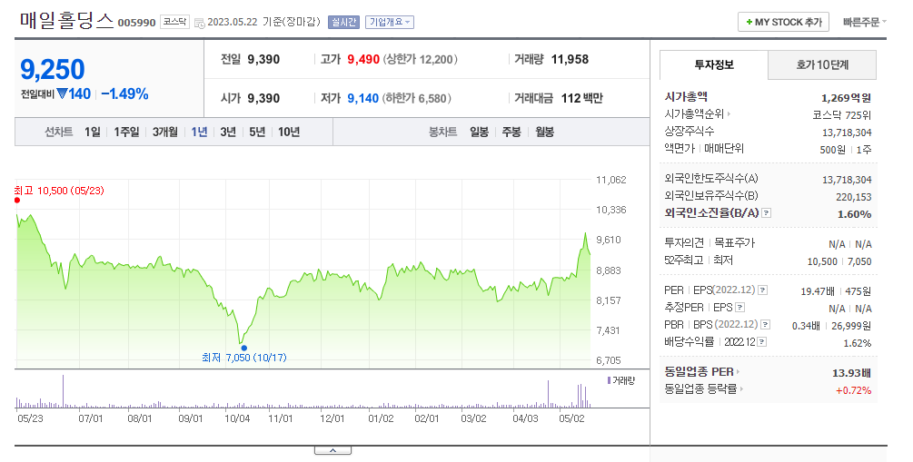 이 글에서는 매일홀딩스 주가 전망과 목표 주가, 기업 정보에 대해서 설명합니다. 주식에 투자하기 전에는 기업의 주가와 재무 정보에 대해서 살펴보는 것이 중요합니다. 매일홀딩스 주식의 주요 현황과 투자 정보를 확인하시고 현재 시장에서의 위치를 분석해보겠습니다.