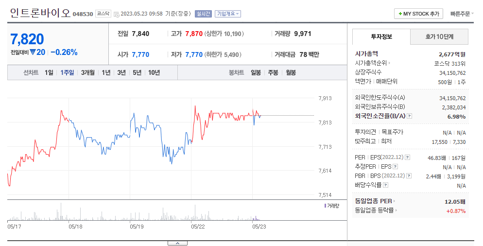 인트론바이오 주가 분석