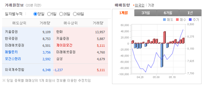 그렇기에 개인 매수 주체는 외국인이나 기관 투자자를 따라하는 것 밖에 방법이 없습니다. 세력이 약한 개인 투자자는 외국인과 기관의 매수 매도 흐름을 확인하고 수익을 낼 수 있습니다. 지금 시장에서는 외국인 세력보다는 기관 투자를 따라하는 경향이 강합니다. 외국인은 속임수를 많이 쓰고 개인이 좋아하는 단기 투자에서는 기관투자를 따라가는 것이 맞기 때문입니다.